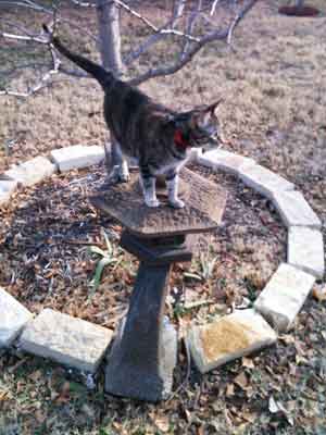Tatiana Romanova, one of the inspirations for Chat, enjoying the view from atop garden pagoda lantern under ginkgo tree
